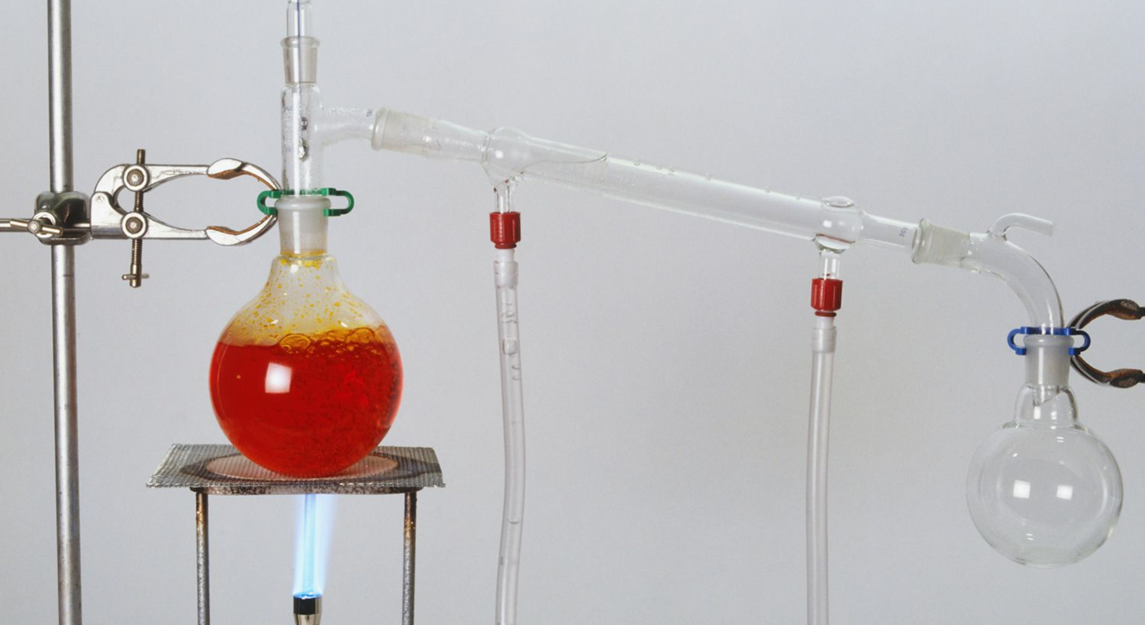 - فصل المذيب عن الزيت العطري باستخدام التقطير.